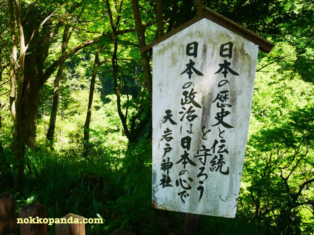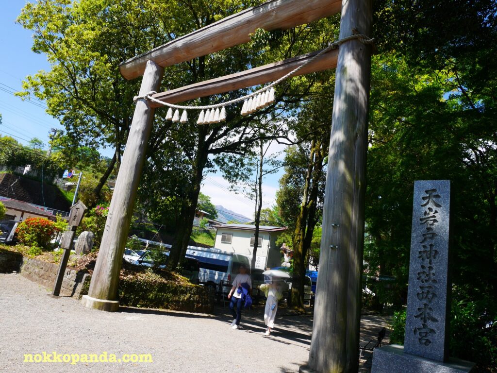 高千穂エリアは天孫降臨の神話にまつわる場所が多く、ここには天照大神が隠れたという天の岩戸が祀られた天岩戸神社があります。