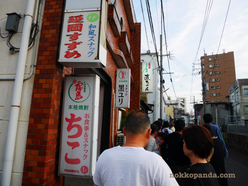 延岡に着き、ホテルでひと休みしてから夕食を食べに出かけました。ホテルの裏、数軒隣にあるこの列が私のお目当てよ。