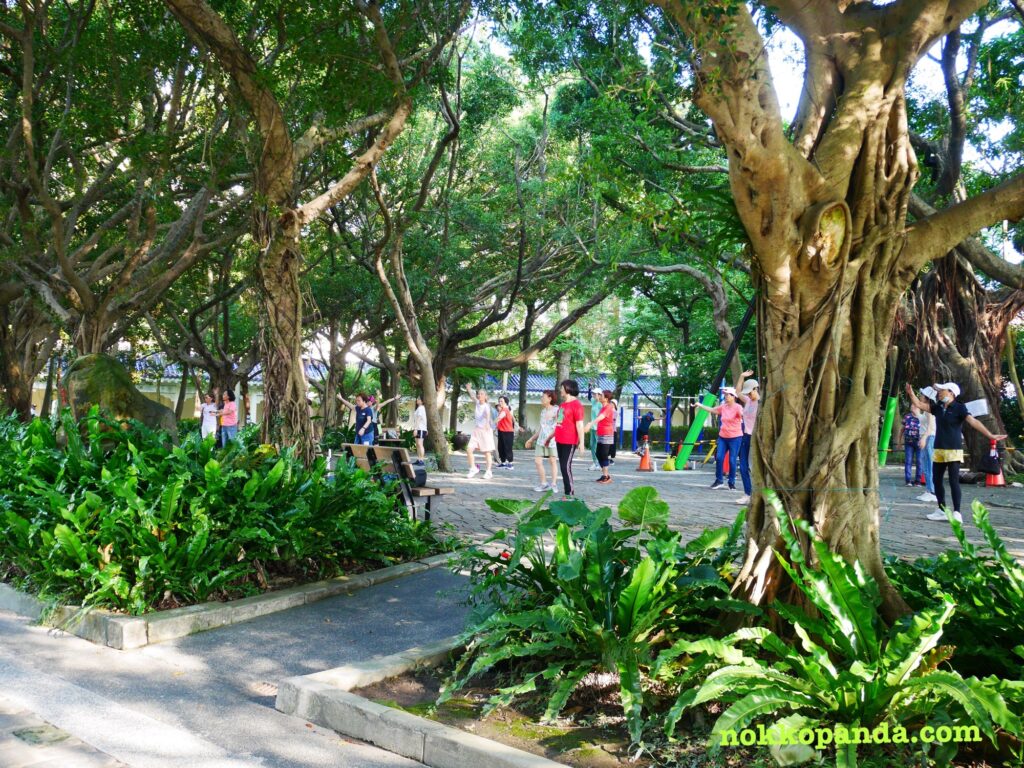 買い物を終え、喉が渇いたという母にドリンクスタンドでフルーツ茶を買い与えて、永康公園のベンチでひと休み。
