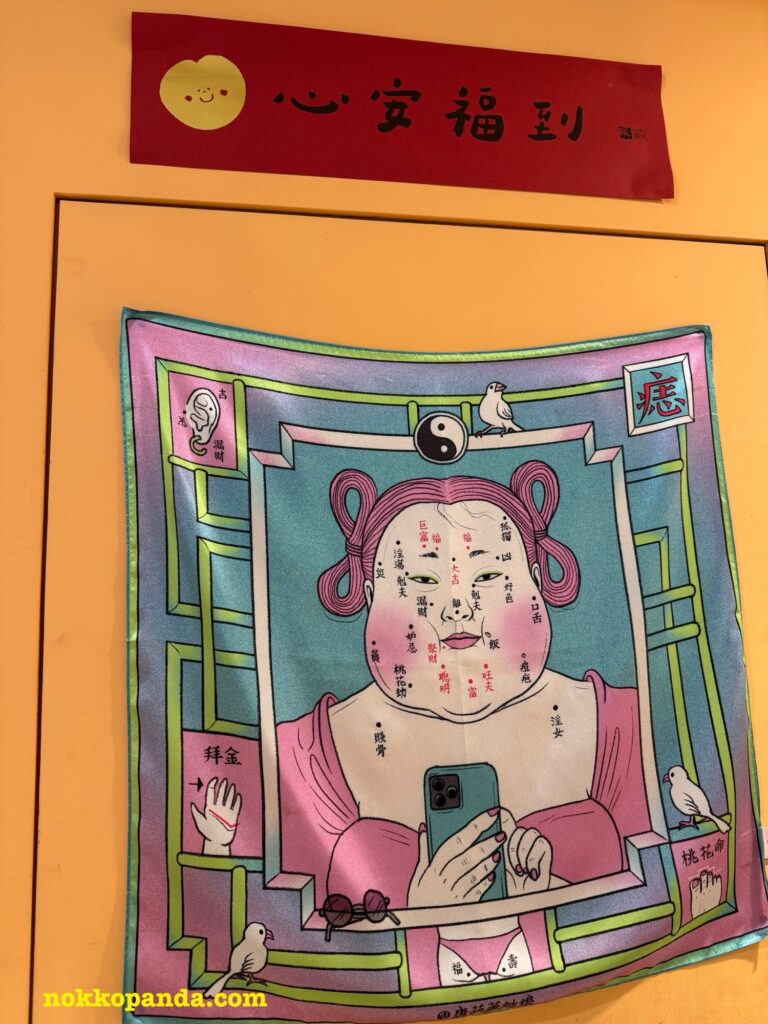 台湾らしい顔のツボの絵と今の世の女子を描いたデザインがおもしろい。まるで鏡の中の自分の姿を見ているかのよう。
