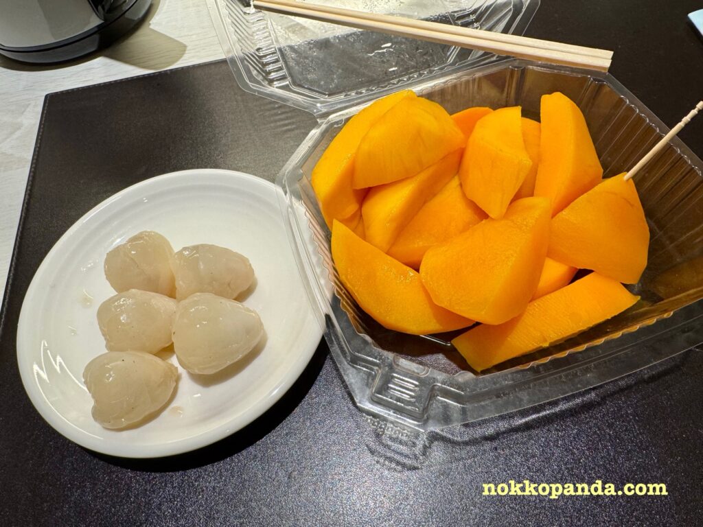 その件は終わりにして、先ほど買っておいたマンゴーとライチをいただきました。どちらも甘くてウマー♪
