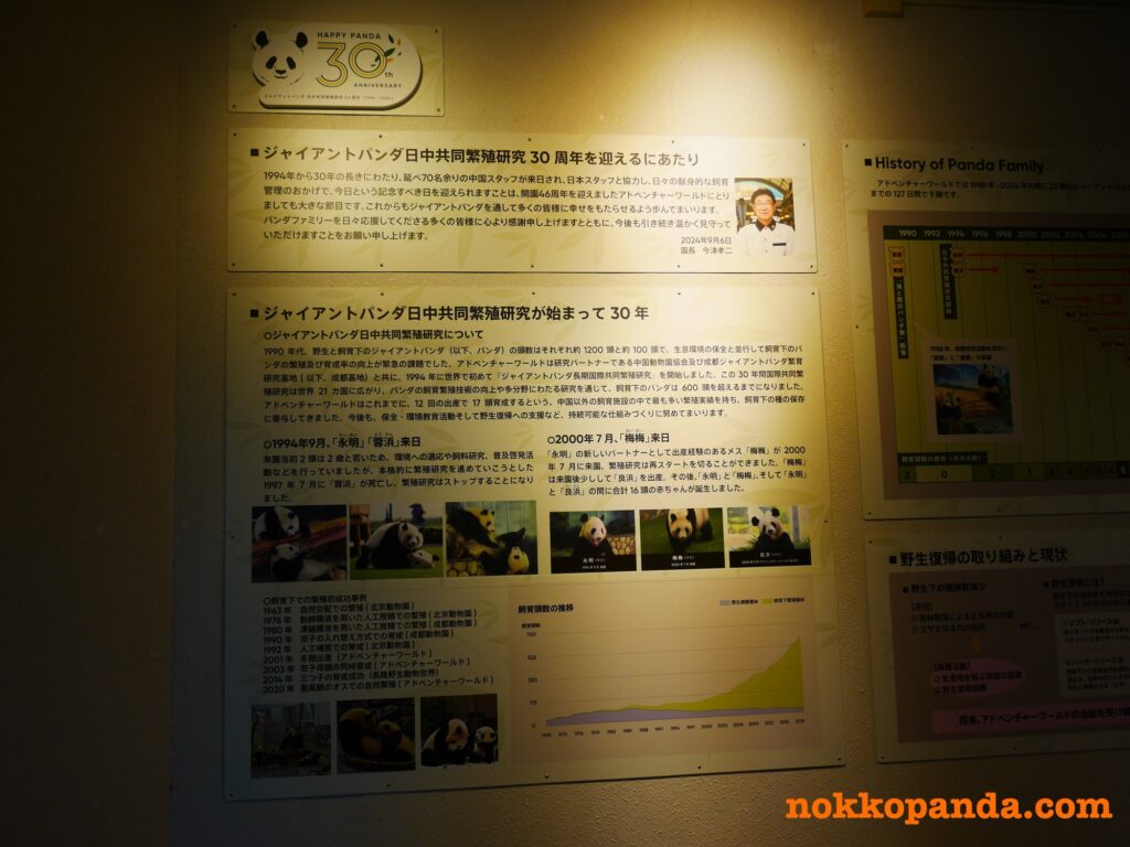 建物内に入ると、パンダが来園してからの30年の歩みが展示されておりました。
