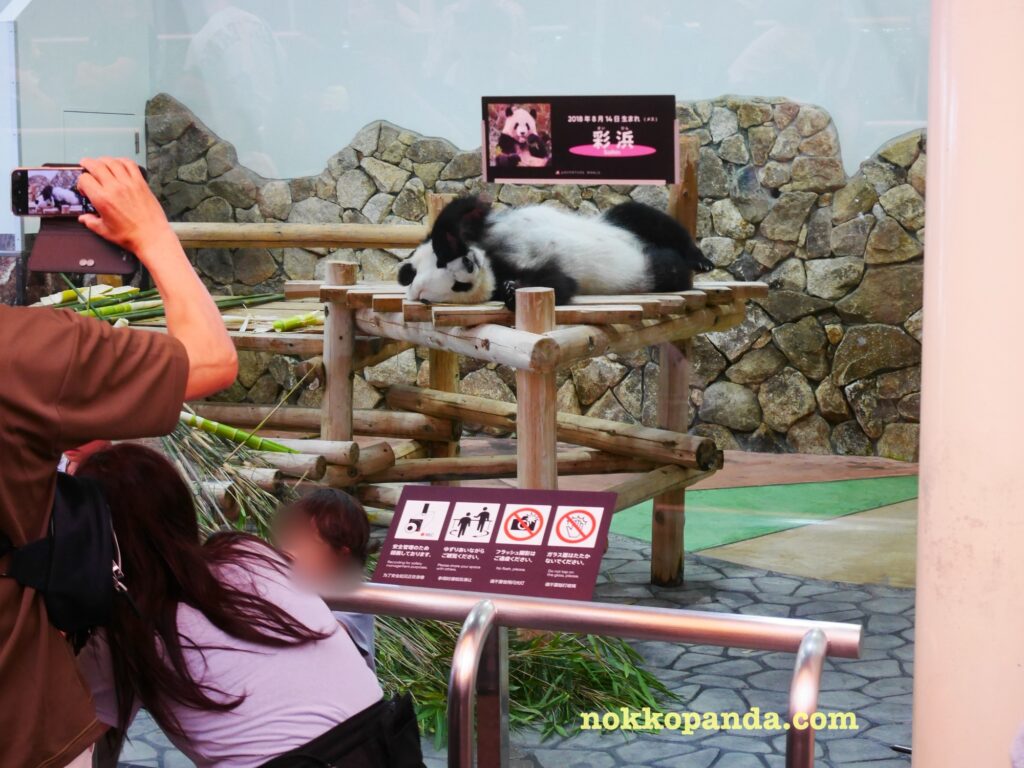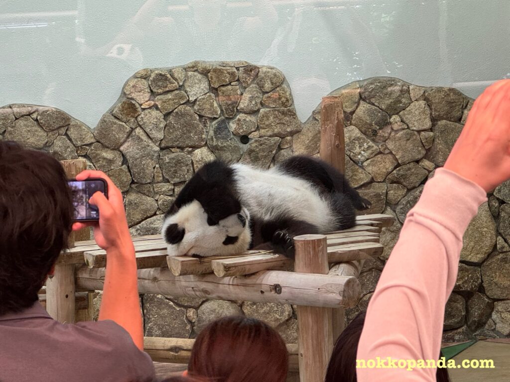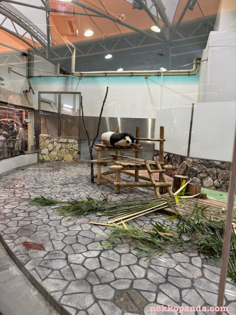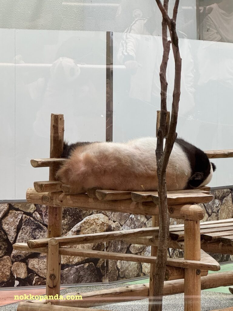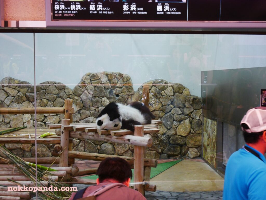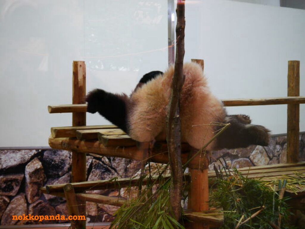 私が人生初の生パンダを見た上野動物園もこんな感じだったな。寝てるパンダの後ろ姿しか見えなかった。