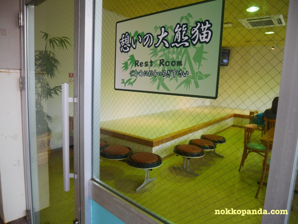 「憩いの大熊猫」と名付けられた休憩所の中には椅子の他に畳敷のスペースがありました。