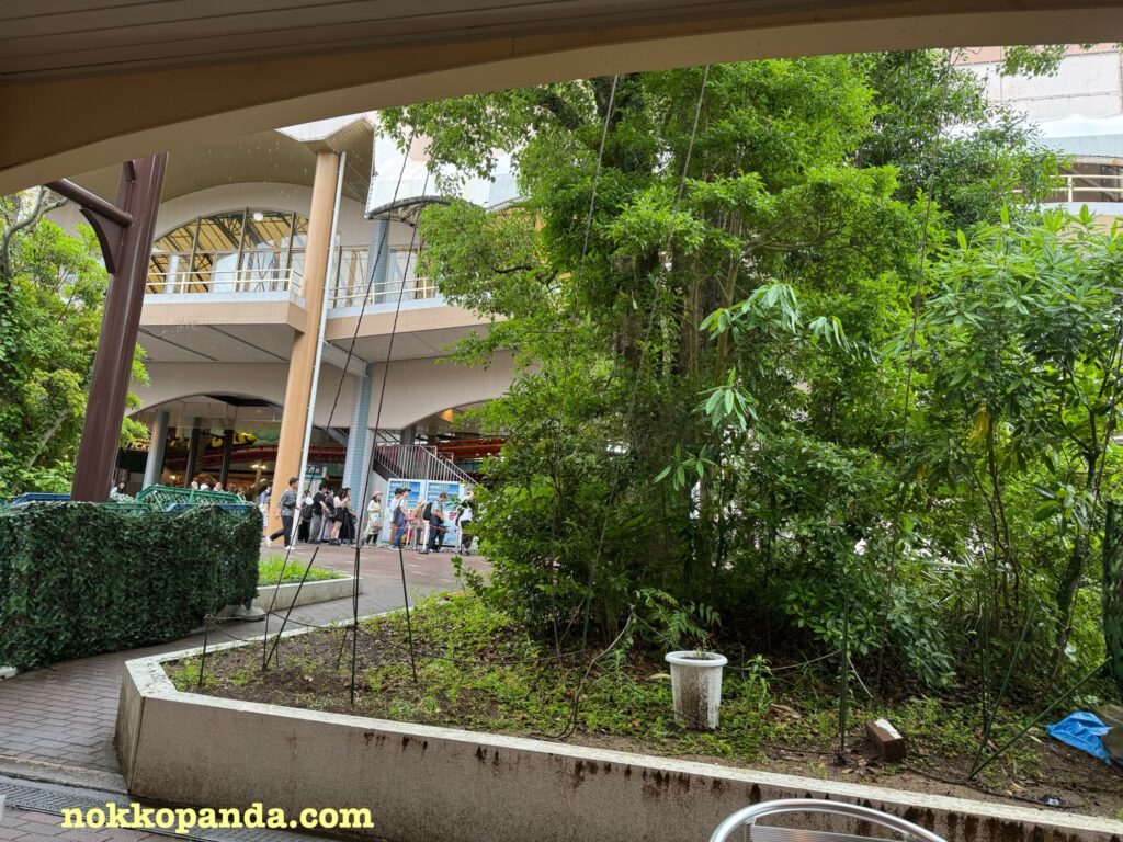 どのレストランも混みあっていて、元々半屋外や外の席が多い施設のため雨に当たらない席を探すのも一苦労です。
