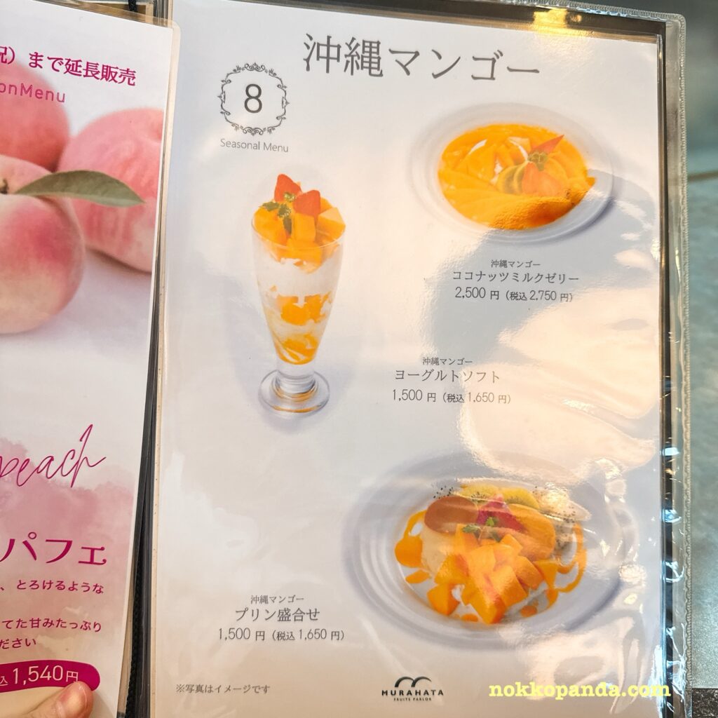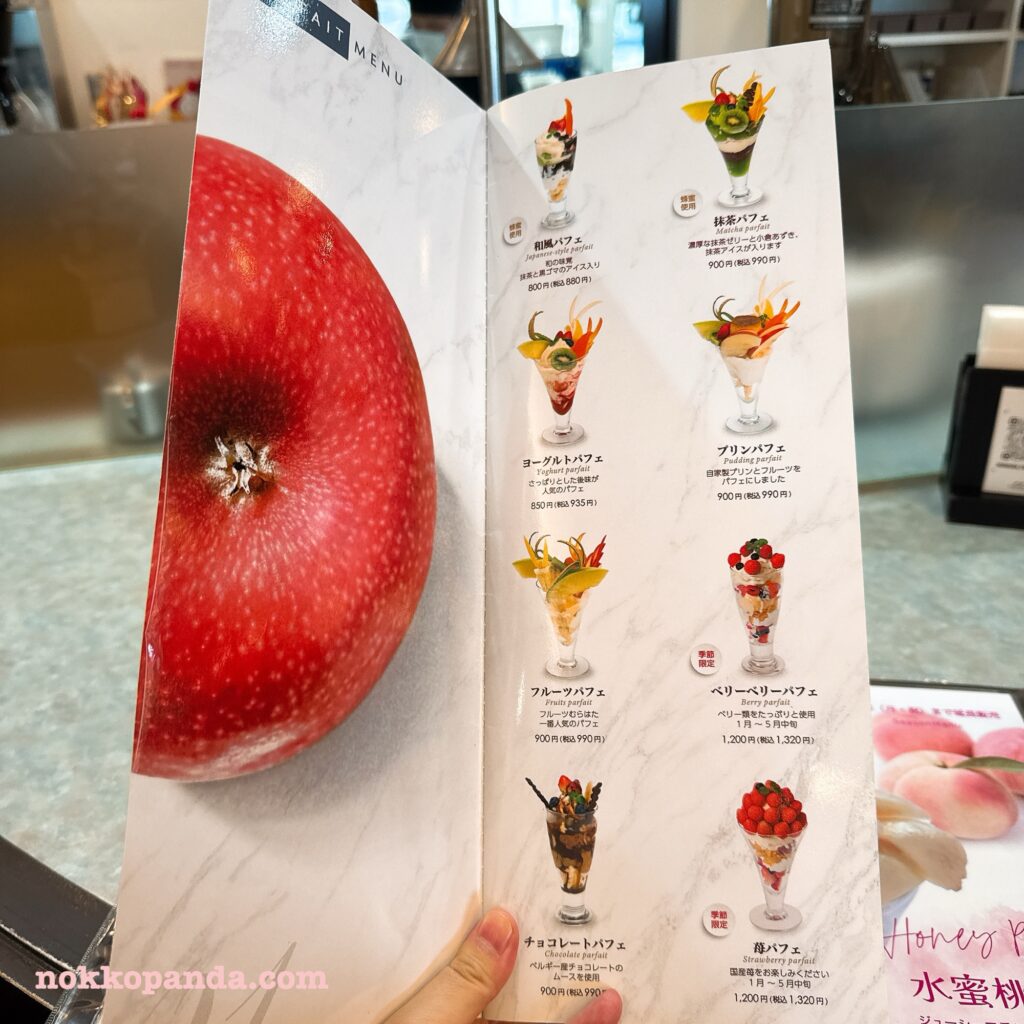 フルーツパーラーむらはたのメニュー