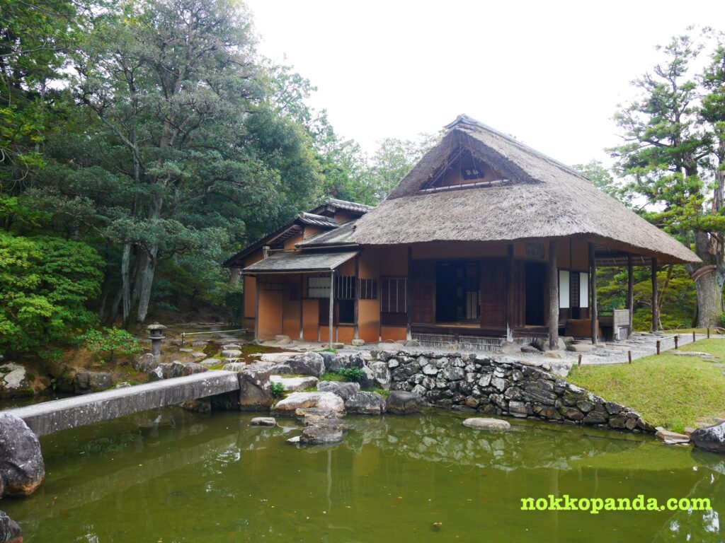 池のある庭園のまわりに書院作りの茶室などが並ぶ回遊式庭園が見どころだそう。