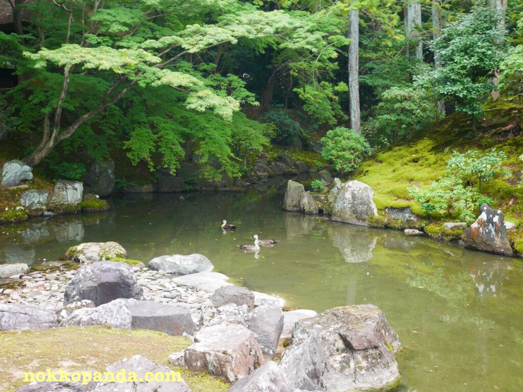 桂離宮の池を泳ぐロイヤル鴨ファミリー