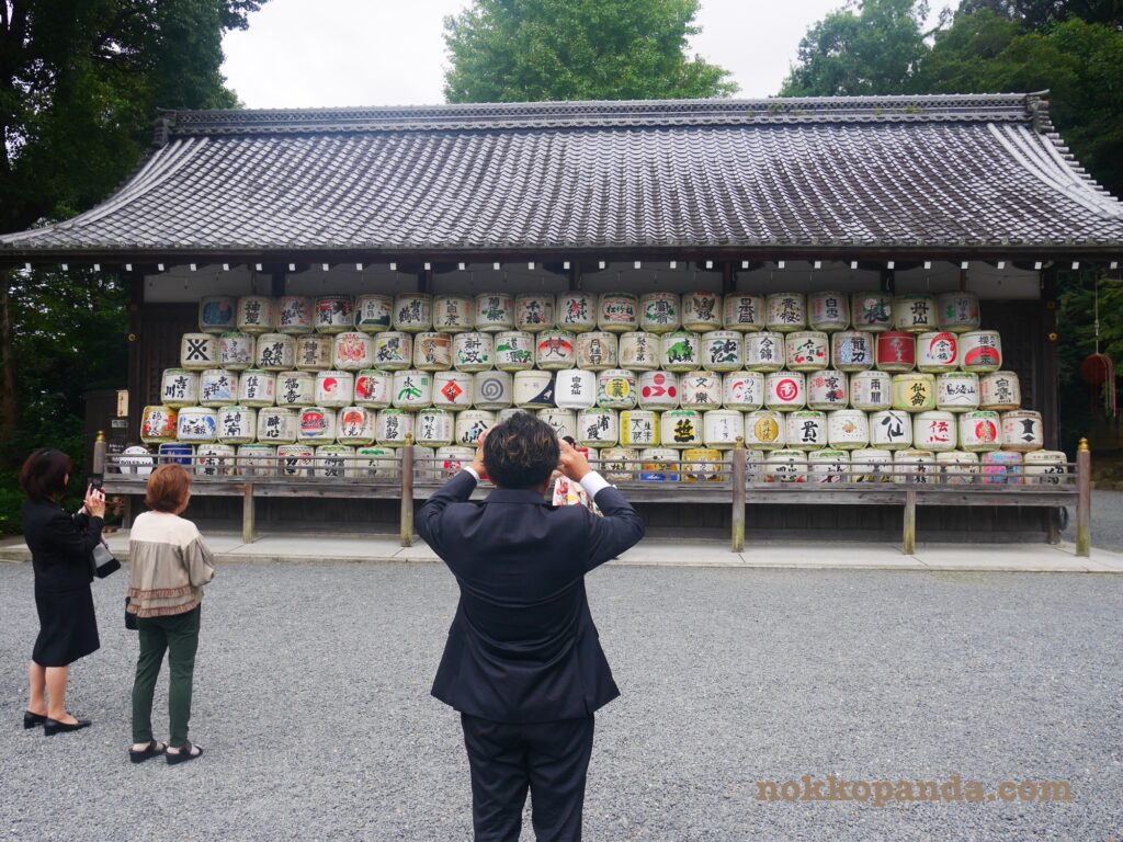 松尾大社は酒づくりの方々に信仰される神社だそうで、奉納された酒樽が並んでいます。