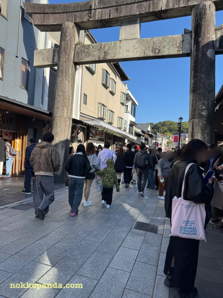 道を進んで参道に出ると、大勢の人で賑わっています。