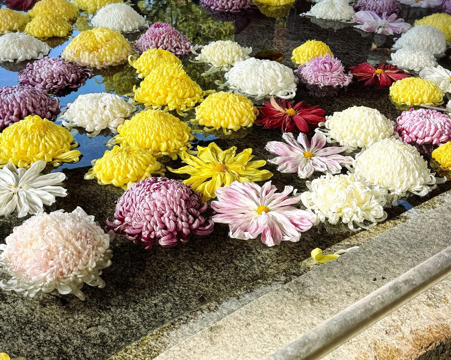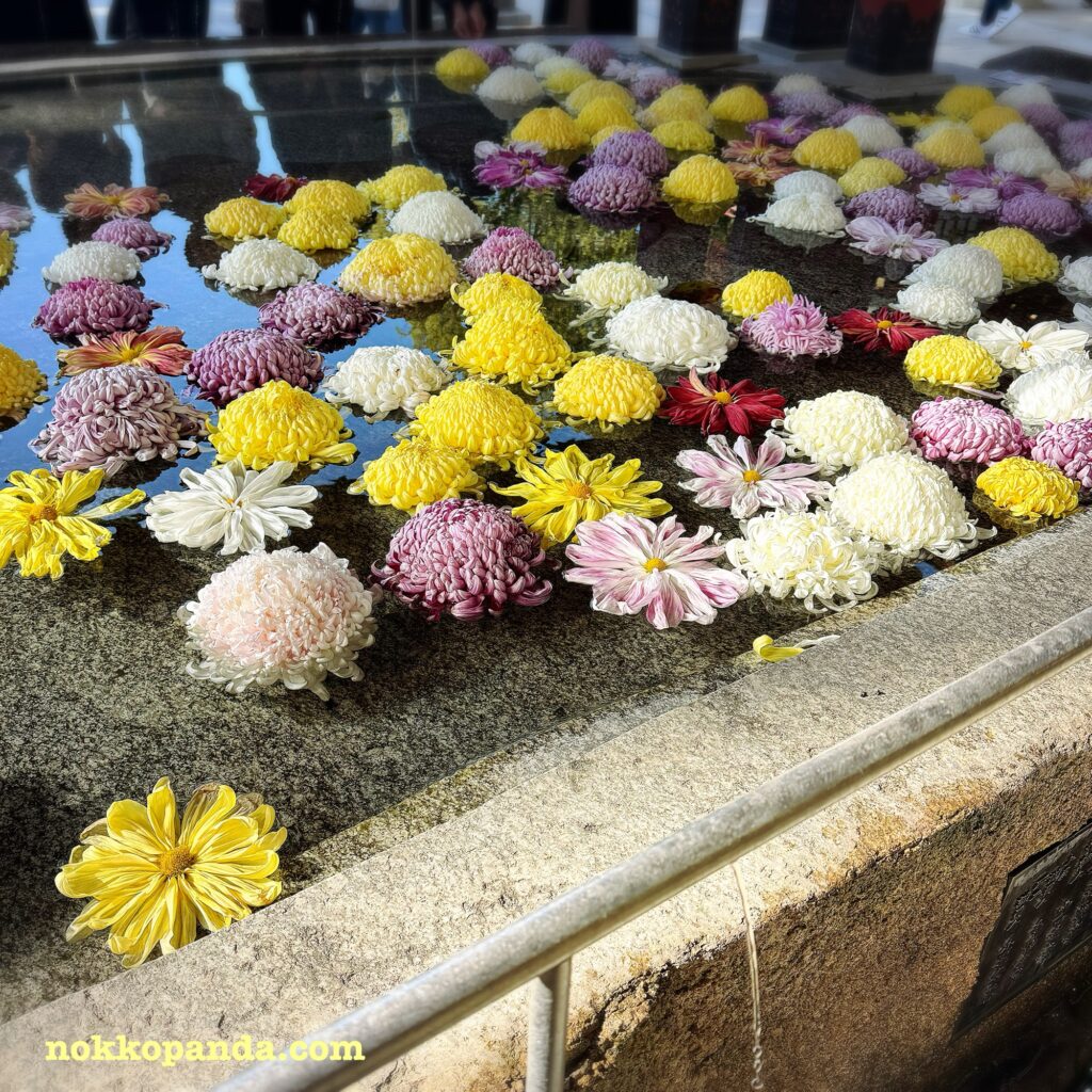 秋らしい菊の花の手水舎