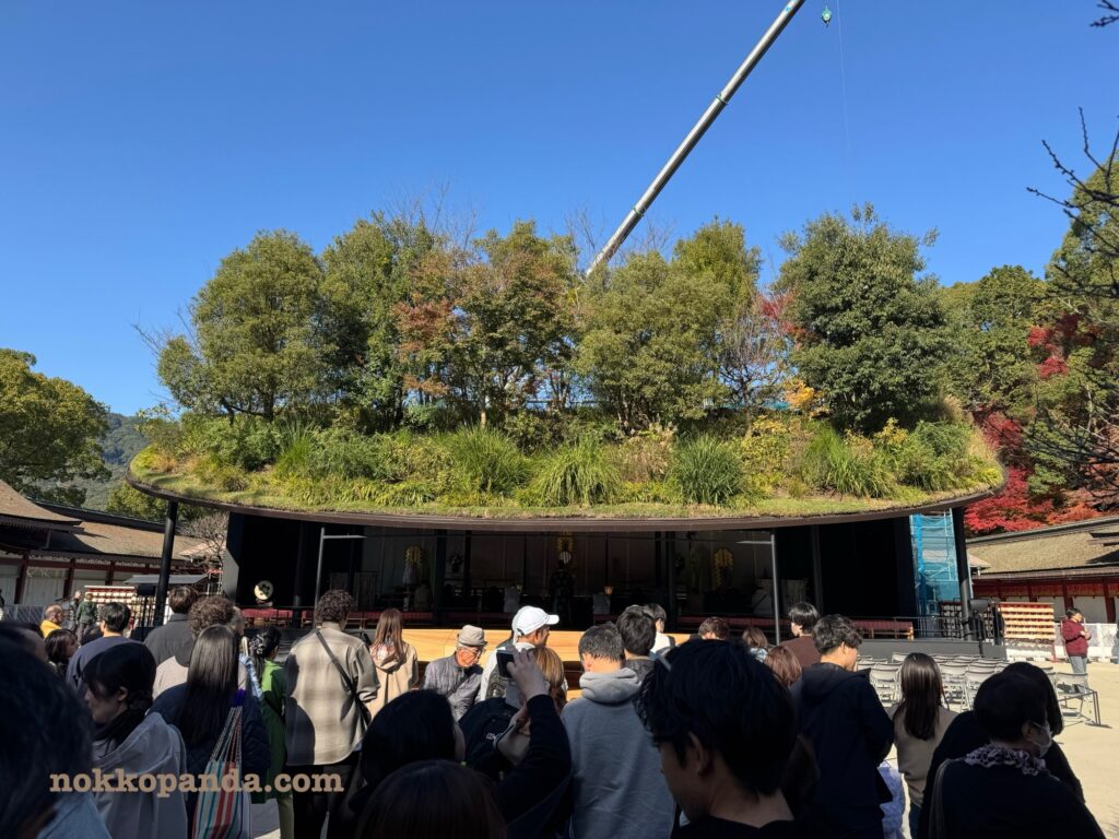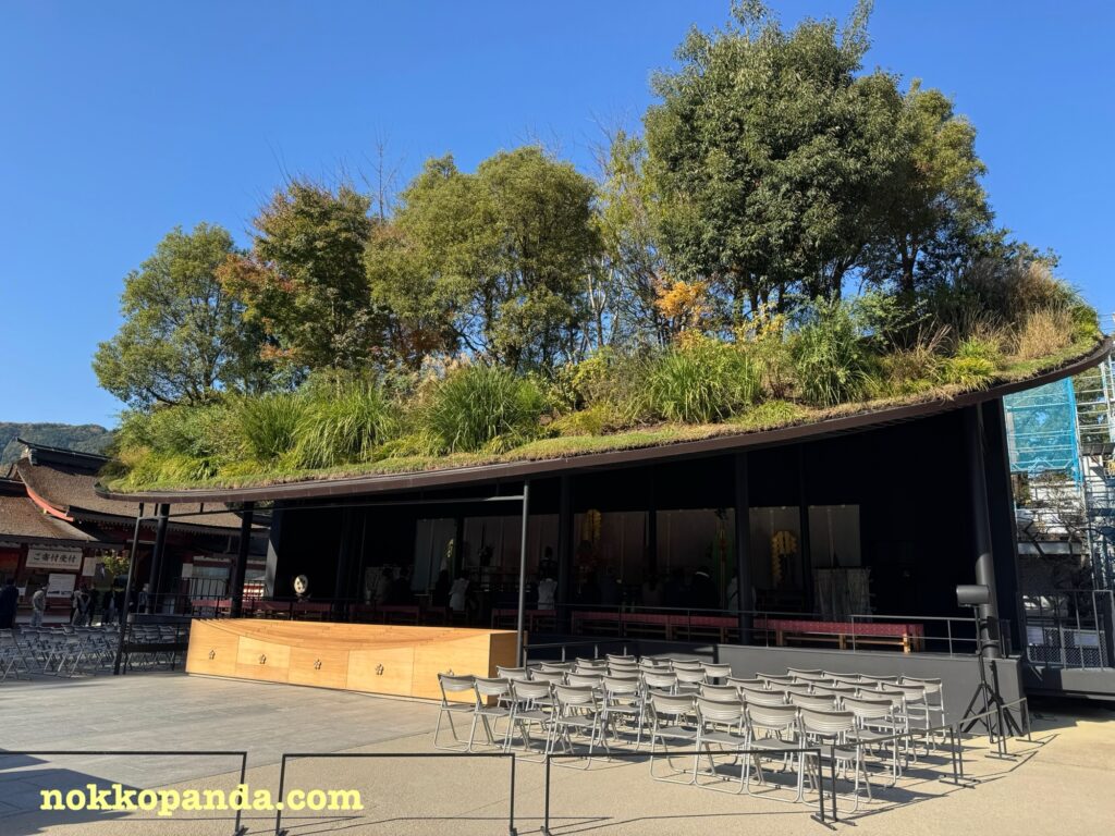 藤本壮介さんという方が設計した仮殿は神社のお社と思えない斬新なデザインで、しかし自然と調和した可愛らしさがあります。