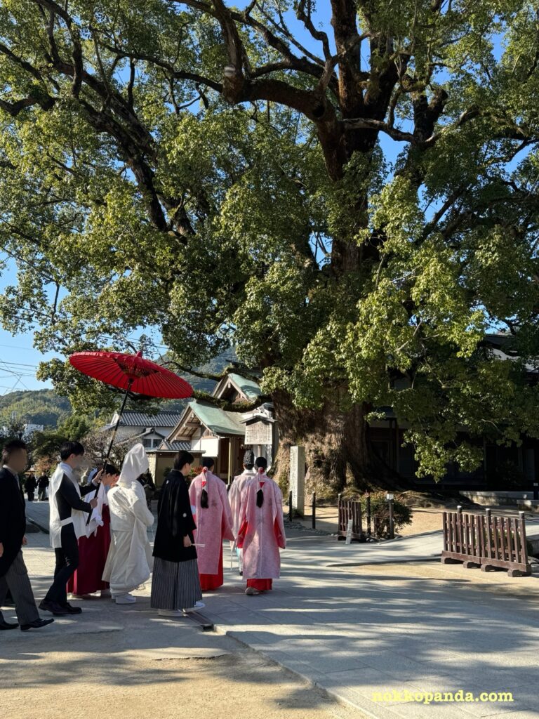 帰る前に太宰府天満宮の大楠を見にいくと、結婚式の行列が通っていきます。