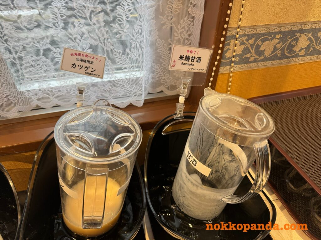 北海道のご当地乳酸飲料カツゲンや自家製の米麹甘酒などもありました。