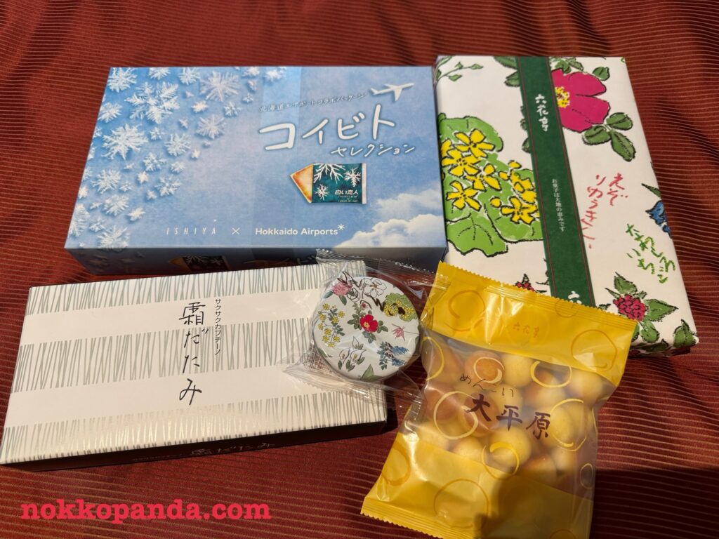あとは六花亭の詰め合わせと、単品で好きな霜だたみ、大平原のミニサイズ「めんこい」とボンボン